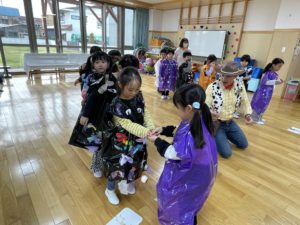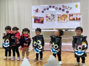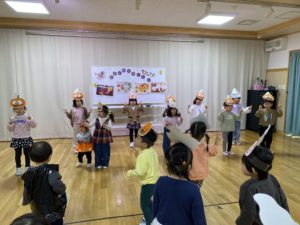みんなで、ハロウィンをしました。お話を聞いたり、ダンスをしたり、ゲームを楽しみました。