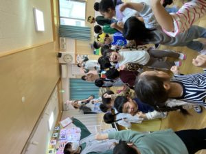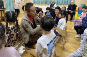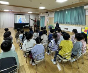 フィリピンの児童養護施設「ハウス・オブ・ジョイ」の澤村信哉さんが来園しました。ハウス・オブ・ジョイでの生活の様子を教えてくださったり、手作り楽器の演奏を聴いて一緒に歌たったり、質問コーナーで盛り上がりました。