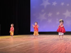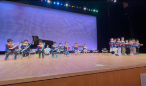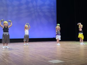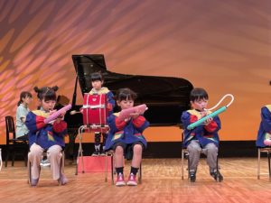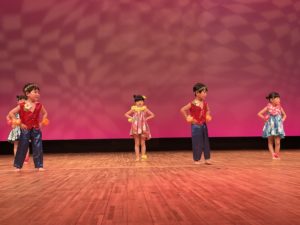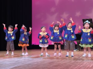 リンクモア平安閣市民ホールでおゆうぎ会を行いました。広いステージの上で元気いっぱい体操やおゆうぎ、合奏を発表しました。