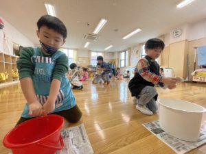 楽しいことがたくさんあった2学期も終わり、みんなで終業式に参加しました。園長先生からのお話を聞いた後、各クラスのお部屋を「Ⅰ年間ありがとう」の気持ちをこめて大掃除をしました。