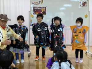 午後は年長組が、ウッディに扮装したオリビエ先生と英語で会話を交わし、楽しハロウィンの一日を過ごしました。
