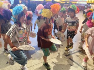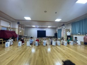 七夕の会では、笹飾りを披露したり、みんなで天の川を作って楽しみました。