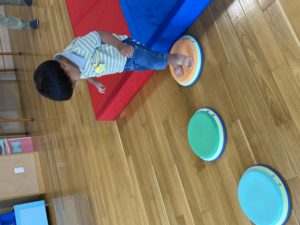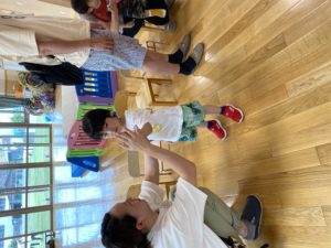 7月のスマイルKOUDA~未就園児教室~は親子でふれあい「運動遊び」でした。2歳児クラスのお友達と一緒に朝の会や、親子でロールマットを使った運動遊びを楽しみました。