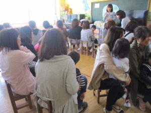 未就園児さんをお招きしてスマイルKOUDAを開きました。令和になって初めての記念すべきスマイルです。今回は在園児と一緒に読み聞かせ会を楽しみました。在園児の新入園児さんも初めての体験にドキドキ。先生が読んでくれるお話の世界に引き込まれているようでした。次回のスマイルは6月8日(土)の運動会ご招待です。