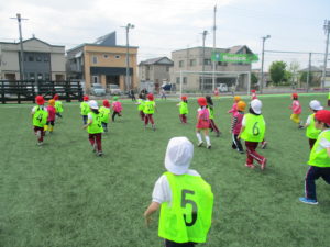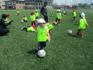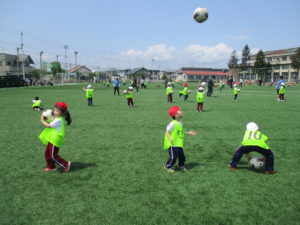 今年度初めての6園合同サッカー教室です。勇者の舞台、青森山田高校のサッカーグラウンドはほどほどの風を感じてのサッカー日和。今日は年長さんが参加しました。汗をかいて帰ってきた年長さん、「ゴール3っつも決めて試合に勝ったよッ」恐るべし、ハットトリック。大満足のサッカー教室でした。