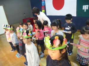春かと思えば冬に逆戻り、なんだか落ち着かないお天気が続きましたが、この日はきちんとやってきました。待ちに待った入園式。新入園児さんたちのかわいらしいお顔がそろいました。理事長先生と新しくお迎えした園長先生のお話もしっかり聞くことができました。年長さんの歓迎の言葉をいただいて、いよいよ明日から新生活が始まりますね。どうぞよろしくお願いします。思いっきり甲田幼稚園を楽しんでください。