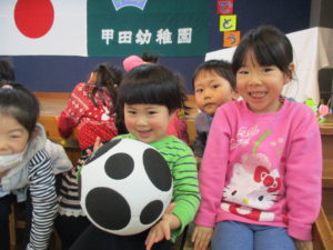 園だよりに「4月に小学校に入学する年長組さん。入園してからみんなでたくさんのことを経験して、心も体も大きくなりました。」との書き出し。9日の土曜日に年長さんの家族参観日がありました。お父さんの出席が多かったのは、ホール活動でドッジボールがあったから?